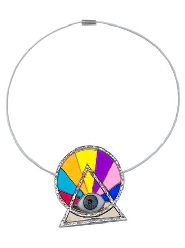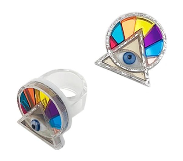 Anillo de acrílico espejo de colores con ojo de vidrio.