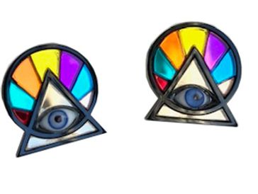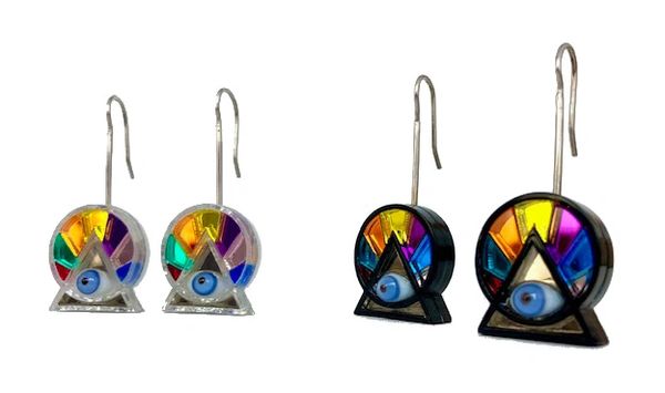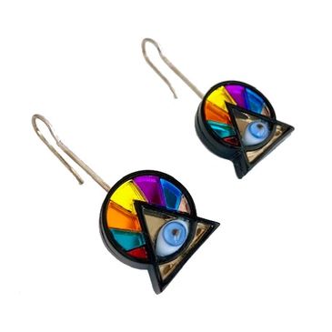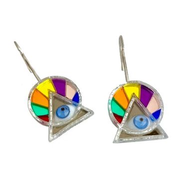 Aretes de acrílico espejo de colores con ojo de vidrio.