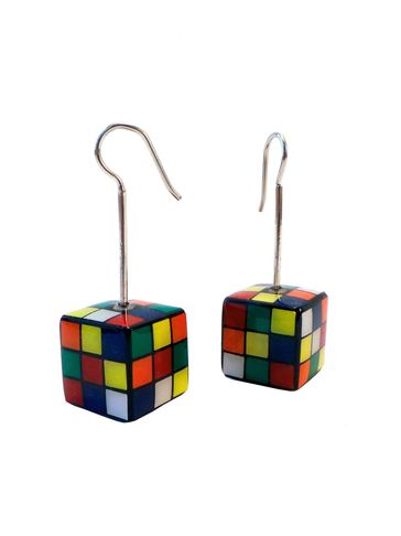 Aretes de acrílico con broquel de plata.