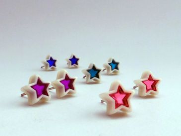 Aretitos de acrílico con broquel de plata.