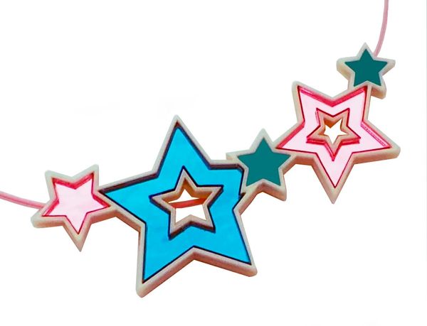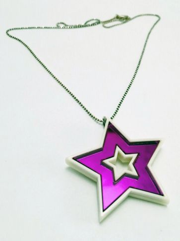 Dije de acrílico con cadena de plata.
