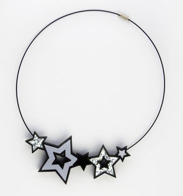 Collar de acrílico opaco con cuentas de vidrio y broche de imán.